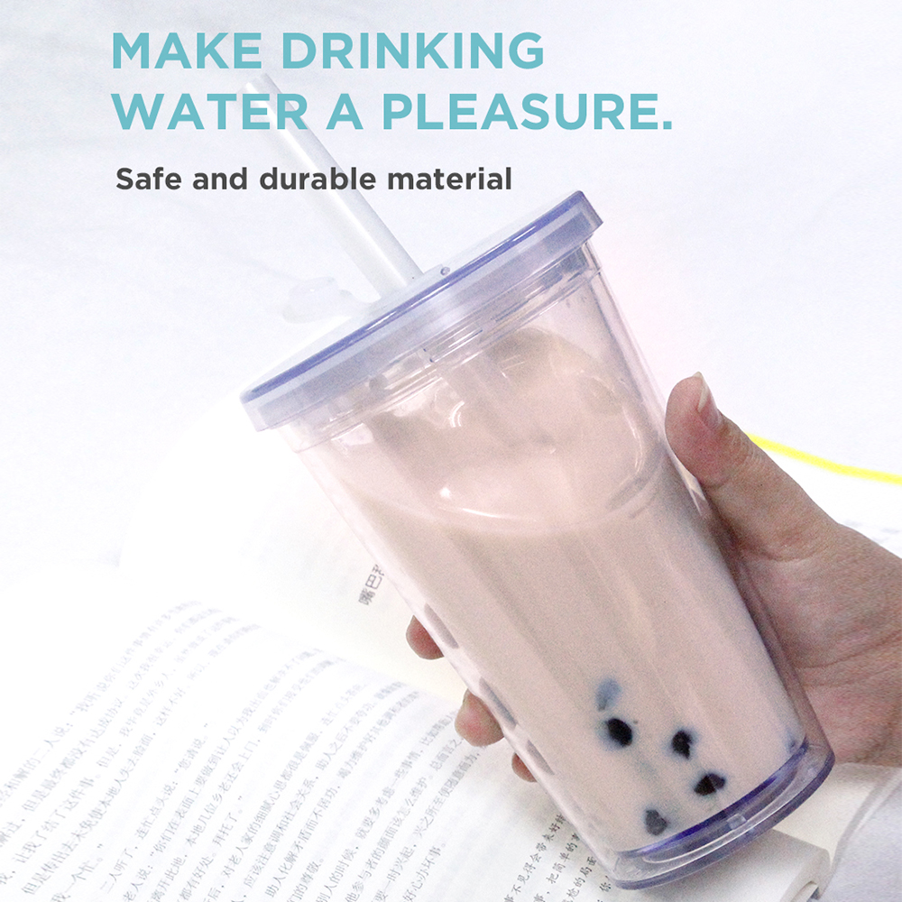 Product | Eco-Friendly Double Wall Insulated Reusable Boba Bubble Cup For Milk Tea With Wide Reusable Straw |